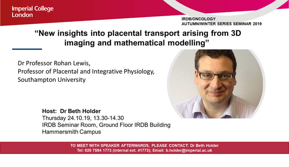 FYI From: Holder, Beth Sent: 22 October 2019 15:18 To: Bruckbauer, Andreas <a.bruckbauer@imperial.ac.uk> Subject: FW: IRDB/Oncology Seminar 24.10.19 Dear Andreas, Bit late notice, but this seminar on Thursday might be of interest to FILM users? Rohan does some really amazing imaging. Best wishes, Beth Lecturer in Maternal & Fetal Health | Imperial College London Institute of Reproductive and Developmental Biology (IRDB) | Dept of Metabolism, Development and Reproduction | Hammersmith Campus | London W12 0HS [cid:image003.png@01D585AF.11B58F20]