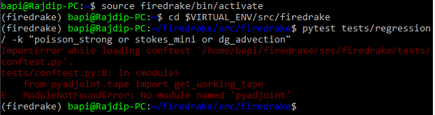 Dear David, Thank you very much. After removing the folder and reinstalling firedrake, it is finally working :) Thanks and regards, Rajdip On Fri, 15 Jan 2021 at 11:41, Ham, David A <david.ham@imperial.ac.uk> wrote: