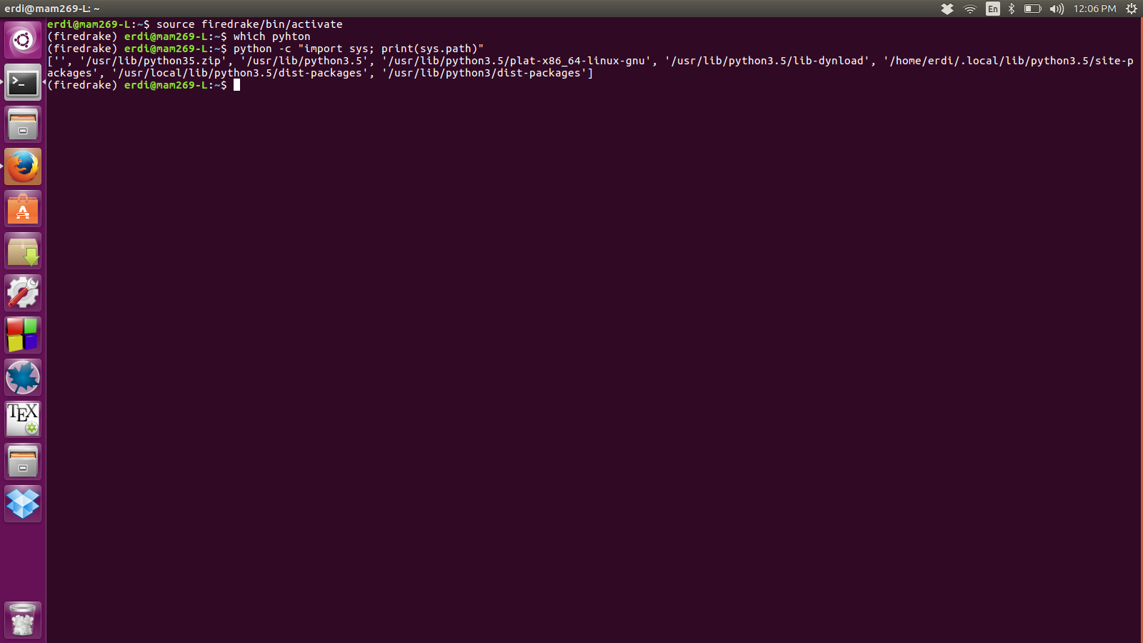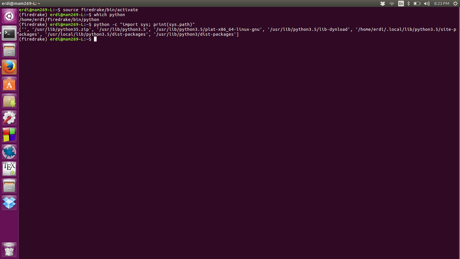 It doesn't look like you're making a mistake! A few things: 1. Can you provide the file firedrake-install.log (which should live in the directory you ran firedrake-install from, it looks like ~/ from your screenshot). 2. After activating the venv (as you did), what is the output of these commands (don't type the dollar sign)? $ which python $ python -c "import sys; print(sys.path)" Thanks, Lawrence