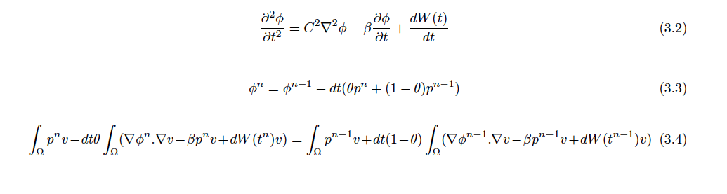 Is it possible to solve pdes driven by some noise using Firedrake? For example, see equation 3.2 in the attachment whose discretisation yields a system 3.3 and 3.4, where dW(t):=sqrt(dt)N(0,Identity). My other related concern is whether It is possible to implement, say, A Kalman filter with equation 3.2 as model equation on Firedrake.