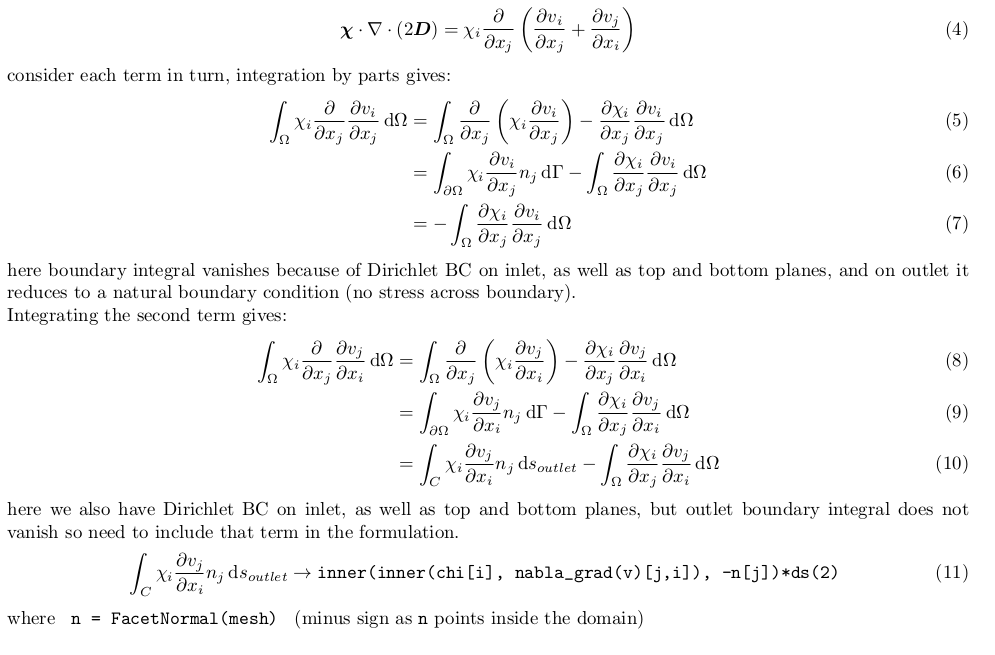That worked, i and j were the wrong way round. Thank you for spotting that. For some reason I also thought n was an inward pointing vector. ________________________________________ From: firedrake-bounces@imperial.ac.uk <firedrake-bounces@imperial.ac.uk> on behalf of skramer <s.kramer@imperial.ac.uk> Sent: 23 April 2016 13:50 To: firedrake@imperial.ac.uk Subject: Re: [firedrake] Pressure outlet boundary condition in plane poiseuille flow On 23/04/16 13:20, Fryderyk Wilczynski wrote: