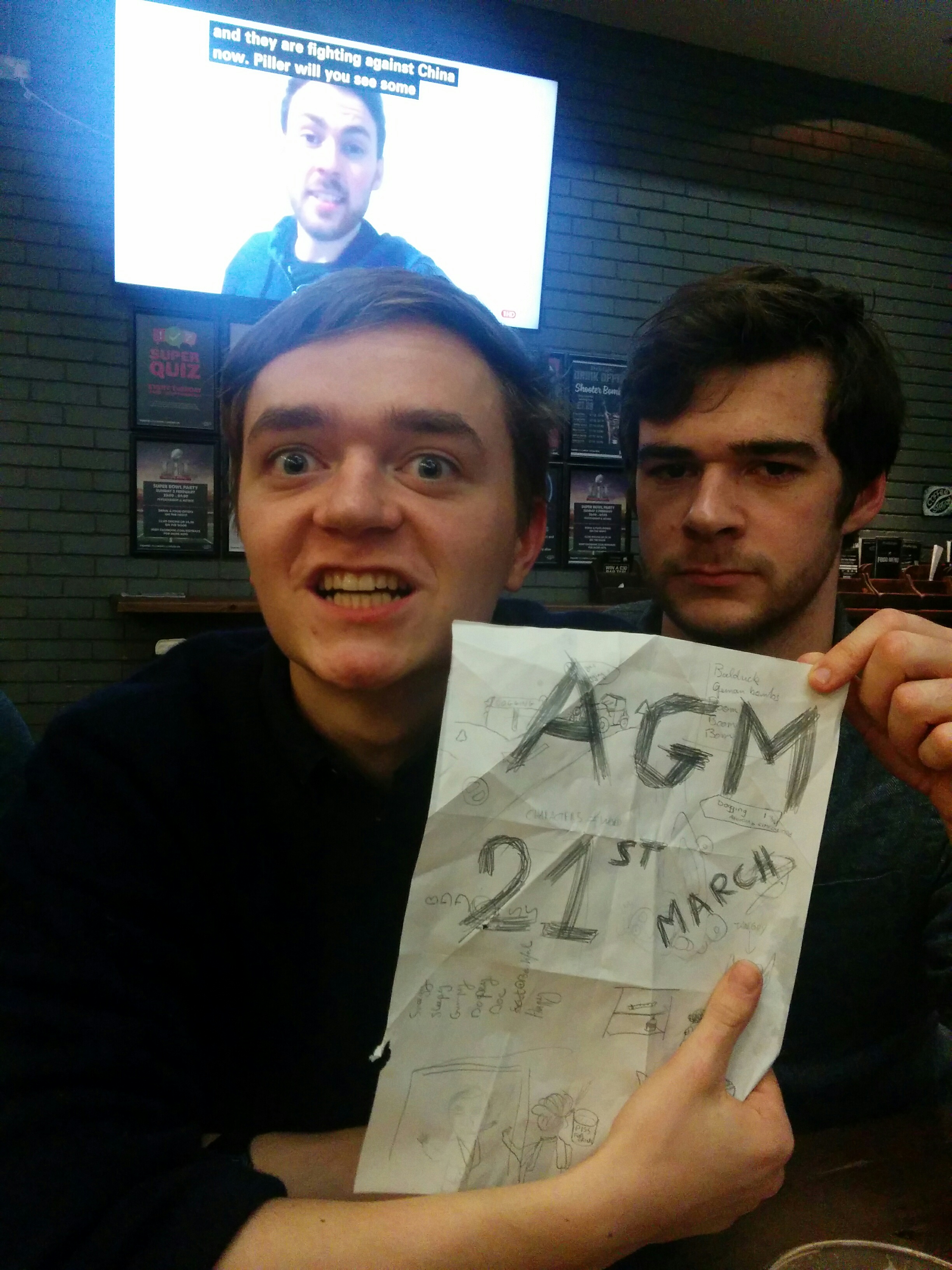 The next Annual General Meeting will take place on* Tuesday 8th March* in six weeks time. It will be held at the *Union Bar*, starting at *7pm*.