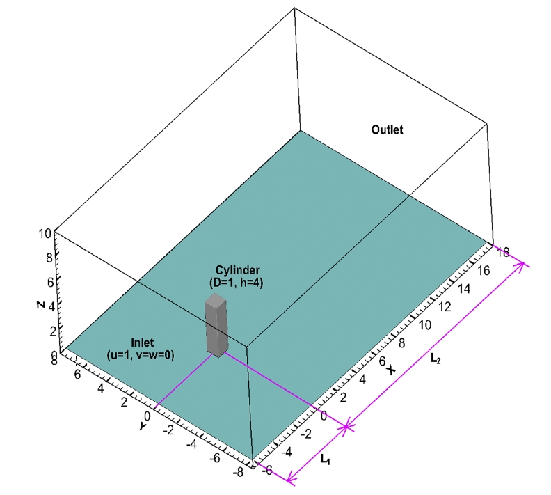 Hi everyone, I am simulating the vortex flow around a squared cylinder mounted a surface using Nektar++ incompressible solver. For this layout (see attached 1), the vortex wakes will become unstable and be shedding as Re >150. However, the current problem is that the computation cannot get the unsteady vortex shedding, it always converges to steady solutions even at Re=500. I even tried giving an incoming disturbance, but the flow fields still cannot converge to vortex shedding. The steady drag coefficients at various Re agree well with the time-averaged results in previous publications, but no vortex shedding occurs. I have simulated the vortex flow past a 2D cylinder, and vortex shedding can be obtained. But for the 3D case, the results are strange. I attached the layout and grid file, and anyone can give some suggestions. Many thanks, Baofeng Baofeng Ma, PH.D Associate Professor Institute of Fluid Mechanics School of Aeronautical Science and Engineering Beihang University Email: bf-ma@buaa.edu.cn Tel: 0086 (0)10 82338344