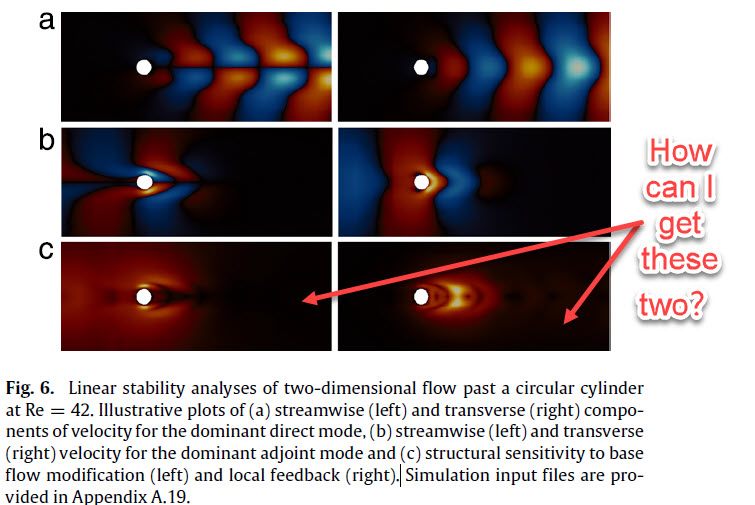 I want to use the Nektar++ to conduct structural sensitivity analysis on the flow problem. I can get direct and adjoint modes, but I don't know how to get the sensitivity of base flow modification and local feedback (as shown in figure).