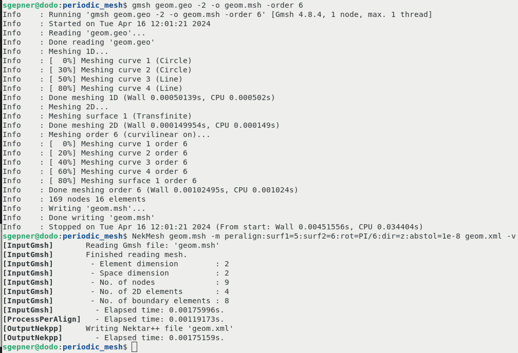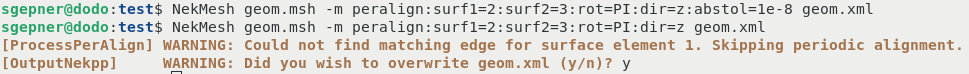 NekMesh geom.msh -m peralign:surf1=5:surf2=6:rot=PI/6:dir=z:abstol=1e-8 geom.xml -v