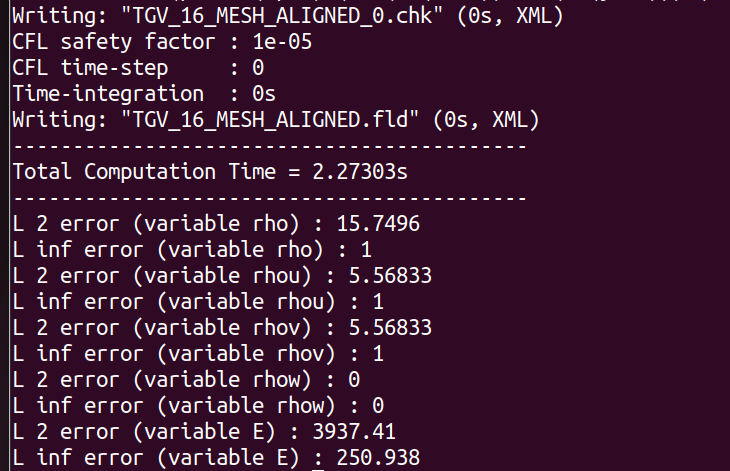 ******************* This email originates from outside Imperial. Do not click on links and attachments unless you recognise the sender. If you trust the sender, add them to your safe senders list https://spam.ic.ac.uk/SpamConsole/Senders.aspx to disable email stamping for this address. ******************* Dear users, I hope that someone can help me. Recently, i'm using the CompressibleFlowSolver by setting the CFL instead of deltaT for running my simulation. However, if i run the simulation with this configuration, it happens that the simulation is completed in only one step and i'm not able to figure out why. I have attached below the screen of my configuration below (SESSION_NEK) and also the output of the simulation. Someone have suggestions? Thank you!