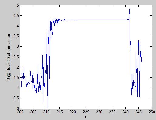 Dear All, I'm trying to run a constricted pipe flow problem at Re=1000 in Nektar++ with the following boundary conditions: <BOUNDARYREGIONS> <B ID="0"> C[6] </B> <!-- Inlet --> <B ID="1"> C[8] </B> <!-- Outlet --> <B ID="2"> C[7] </B> <!-- Wall --> </BOUNDARYREGIONS> <BOUNDARYCONDITIONS> <REGION REF="0"> <D VAR="u" VALUE="2*(1-(4*(y^2+z^2)))" /> <D VAR="v" VALUE="0" /> <D VAR="w" VALUE="0" /> <N VAR="p" USERDEFINEDTYPE="H" VALUE="0" /> </REGION> <REGION REF="1"> <N VAR="u" VALUE="0" /> <N VAR="v" VALUE="0" /> <N VAR="w" VALUE="0" /> <D VAR="p" VALUE="0" /> </REGION> <REGION REF="2"> <D VAR="u" VALUE="0" /> <D VAR="v" VALUE="0" /> <D VAR="w" VALUE="0" /> <N VAR="p" USERDEFINEDTYPE="H" VALUE="0" /> </REGION> </BOUNDARYCONDITIONS> The simulation seems converging but after a while starts to diverge and ended by Nektar due to exceedence of maximum iteration number. Time history plot of a node at the center of the pipe is attached to the mail. Does anybody have idea about the source of this problem? Is it directly related with the structure of the mesh I've used or do I set something wrong in my *.xml file? Best Regards, Kamil --- Bu e-posta virüslere karşı Avast antivirüs yazılımı tarafından kontrol edilmiştir. https://www.avast.com/antivirus