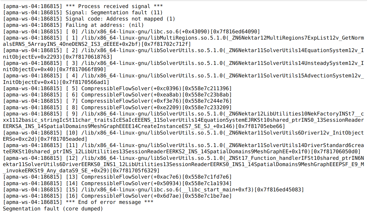 I am trying to study compressible flow over a NACA airfoil with Nektar++ and I am seeing a Segmentation fault while running the simulation. The steps for creating the simulation are as follows: