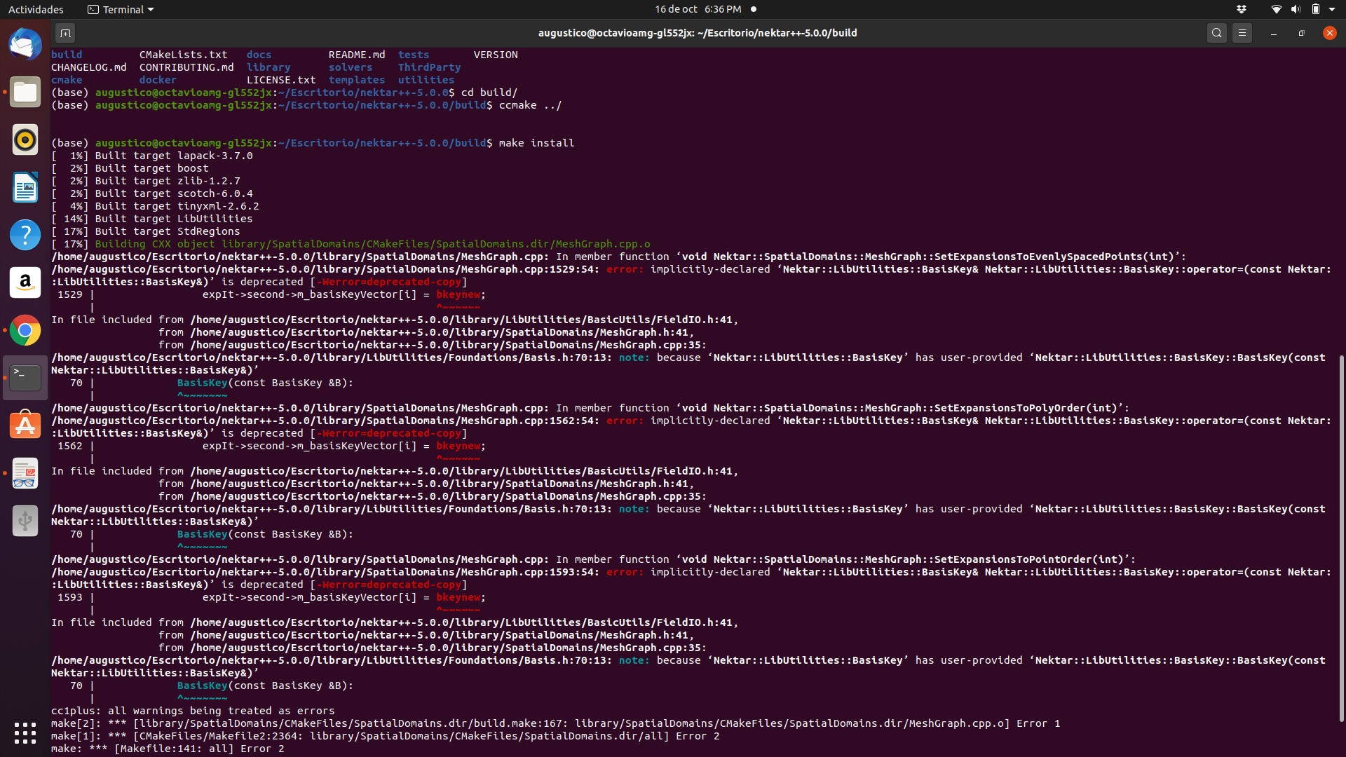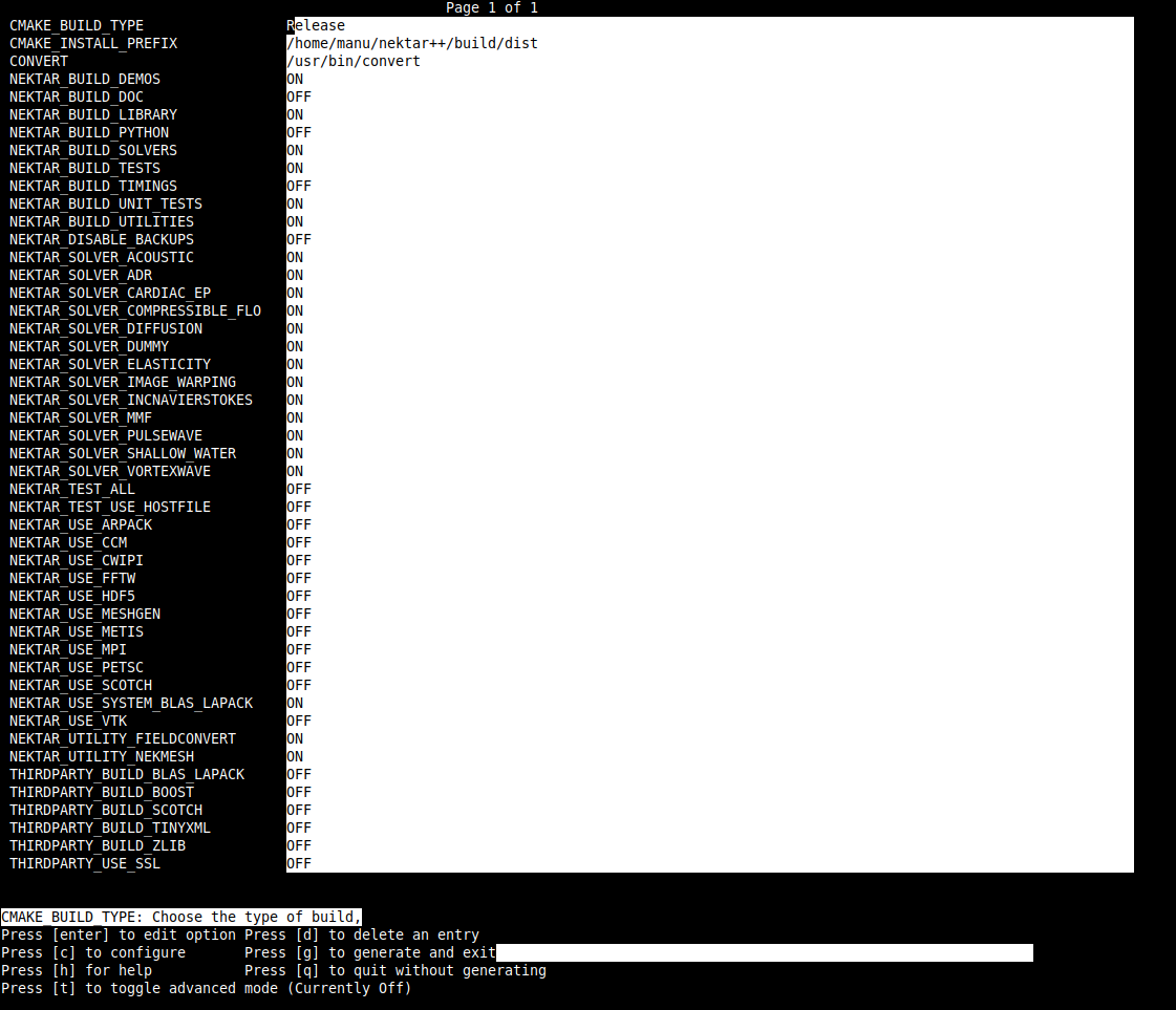 Hi, I am having troubles to install Nektar. I attached what appears in my terminal when I try to compile using -make install- and my configuration in -ccmake ../- Really hope you can help me, thank you so much!
