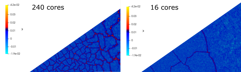 ******************* This email originates from outside Imperial. Do not click on links and attachments unless you recognise the sender. If you trust the sender, add them to your safe senders list https://spam.ic.ac.uk/SpamConsole/Senders.aspx to disable email stamping for this address. ******************* Hello everybody, I am currently running parallel quasi-3D simulations (Hom1D) with the incompressible Navier-Stokes solver within Nektar++ version 5.3.0 and the data transfer at the partition boundaries appears to be faulty when initializing the velocity field in the homogeneous z-direction with additive white Gaussian noise as can be seen here: [g853.png] I don't know if this problem still exists in the current Nektar version, but I couldn't find anything about it in the user archives and therefore wanted to draw attention to this. All the best, Alex