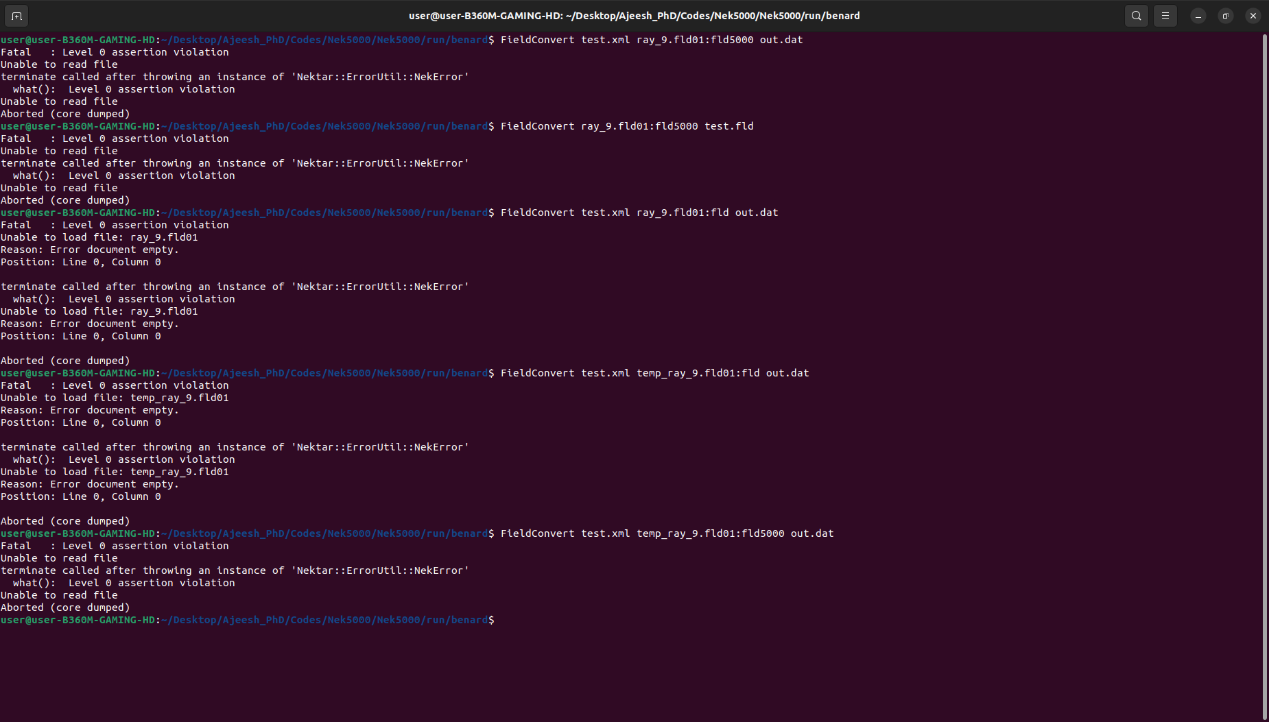 before using the actual command you mentioned. This command is intended to convert the Nek5000 field files to nektar++ format, and hence is sufficient to verify whether the FieldConvert can handle Nek5000 formats as claimed.