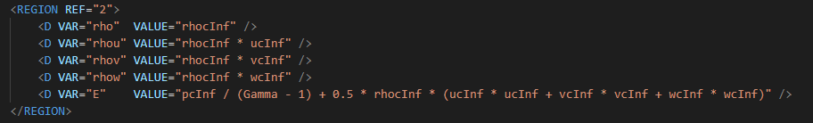 Hi all! I want to define two groups of values of rho, rhou, rhov, rhow,E on the two different inlets. You can see my example in following pictures. The two boundary conditions : What i want to do is to keep the values of rho ,rhou ,rhov, rhow and E constant on the two boundary,but when i see the calculated results with paraview, the values on the "2" region are changing,only "0" region is constant....I don't know how to solve it.... Looking forward to your reply!