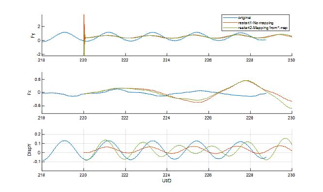 ******************* This email originates from outside Imperial. Do not click on links and attachments unless you recognise the sender. If you trust the sender, add them to your safe senders list https://spam.ic.ac.uk/SpamConsole/Senders.aspx to disable email stamping for this address. ******************* Dear Nekar++ users, Hope the email finds you well. I would like to know if anyone has tried restarting a VIV problem in VCS Mapping solver? In my case (VIV of a circular cylinder), when restarting a simulation from a flow field (restart2 in the attached figure 1, "*.map" for mapping and "*.fld" for initial conditions), the force in the motion direction has large fluctuations at the initial few steps. These large fluctuations cause subsequent inconsistent evolutions for all signals compared with the original ones. This issue is found for a forced vibration case when the domain has an initial acceleration, as per figure 2 below. Noted that if we compare the Fy evolution (restart 2 in figure 1) with that of the restart 1 (only define the "u,v,w,p" in "*.fld" file for initial conditions), they are quite similar. I therefore suppose if the p field due to coordinate transform is not considered in "*.map", resulting in significant changes on forces when the domain has non-zero acceleration. Does anyone have any suggestions on restarting a VIV case? Since the initial difference doesn't decay during the simulation, it cannot be ignored currently. Thanks in advance. Chengjiao Figure 1, a free vibration case where the cylinder has 1-dof in y-direction Figure 2, a forced vibration case where the cylinder is forced to vibrate in x-direction. Dr Chengjiao Ren Research Associate School of Engineering * Perth WA 6009 Australia +61 413077330 * chengjiao.ren@uwa.edu.au<mailto:chengjiao.ren@uwa.edu.au>